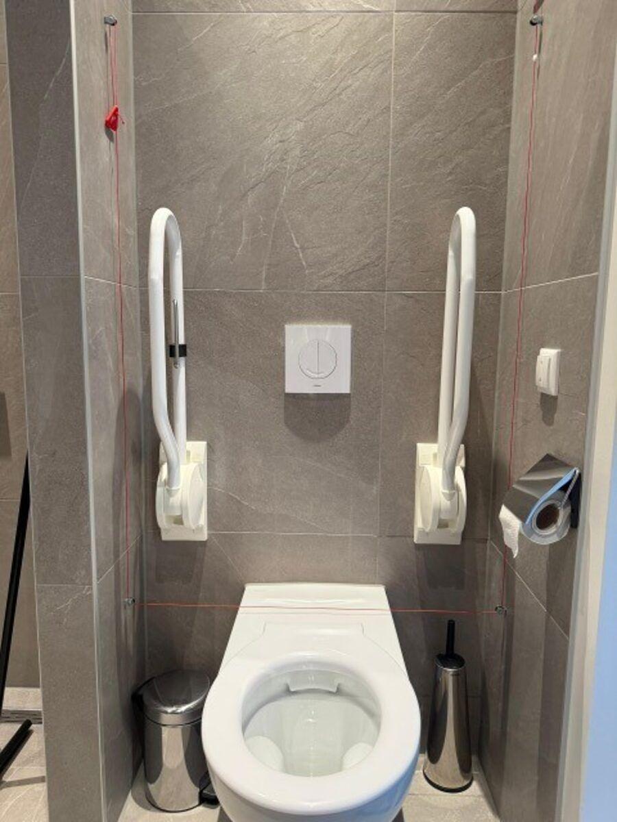 In our wheelchair-friendly vacation homes, one bathroom on the first floor (en-suite) is adapted for disabled persons. This has a toilet with support bars, wide doorways and a spacious drive-in shower with seating.